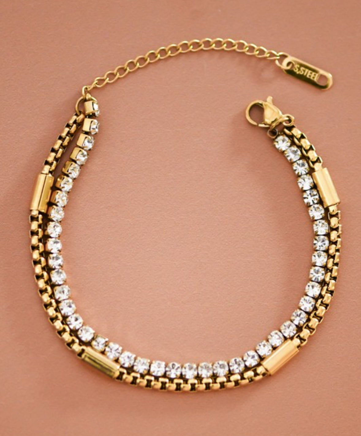 CRYSTAL/CHAIN LINK BRACELET - 18K PLATED